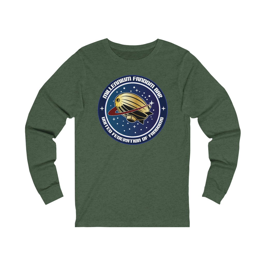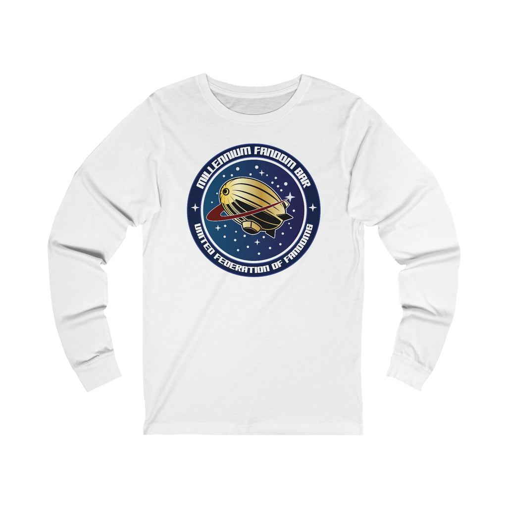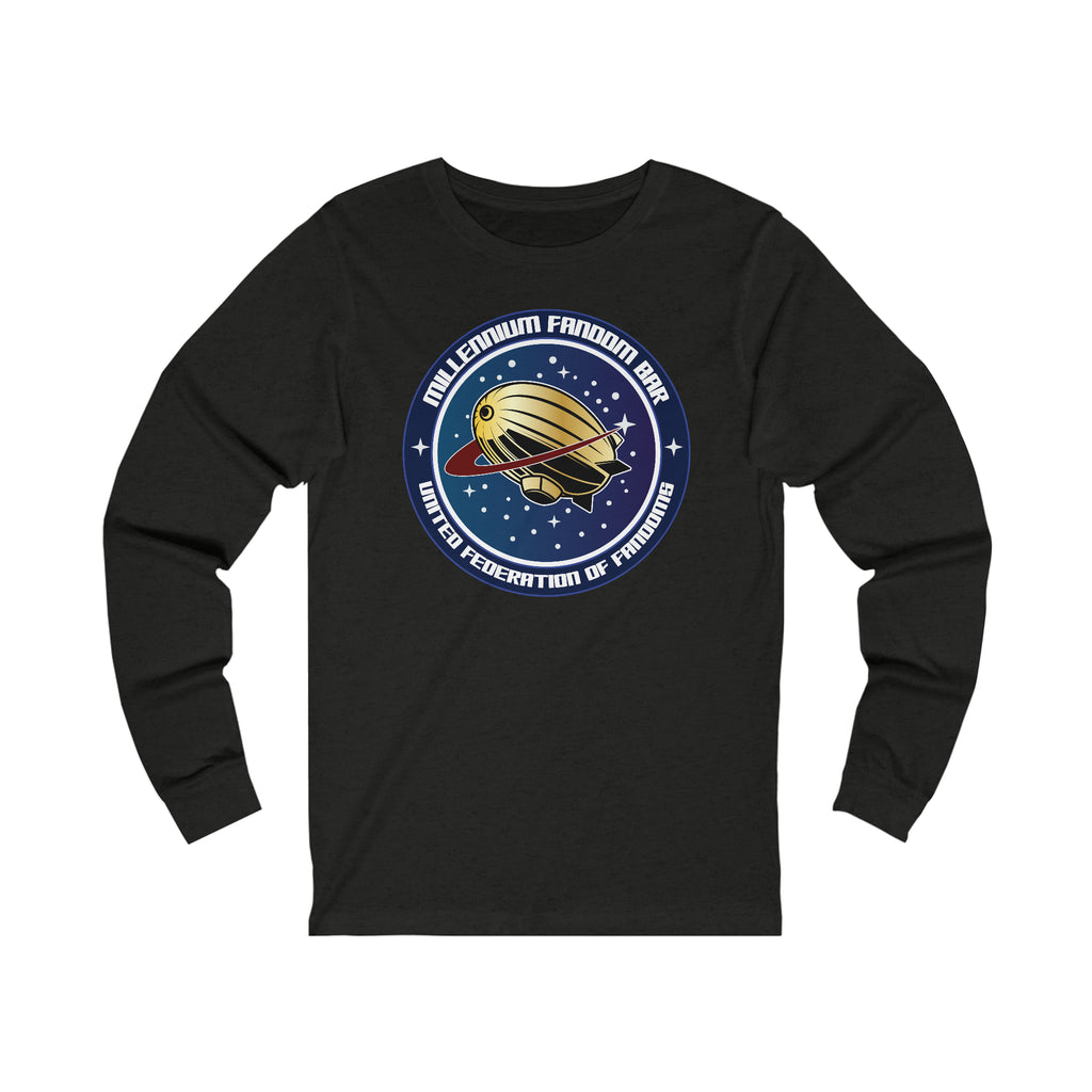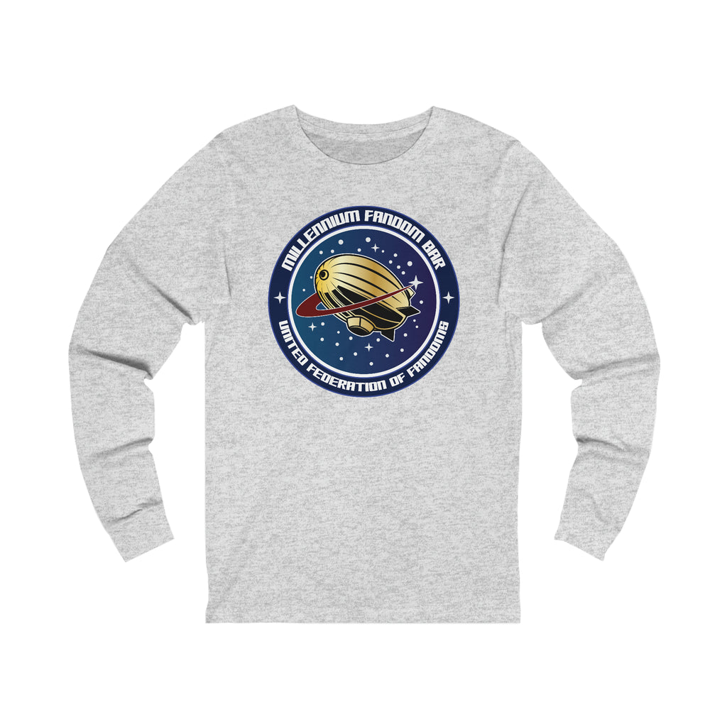 Crafted to celebrate the love for space odysseys and The Millennium FANDOM BAR, this tee embodies the essence of charting uncharted territories and building bridges across galaxies. The long-sleeve design offers both comfort and style, making it ideal for any fan ready to embark on their next fandom journey.