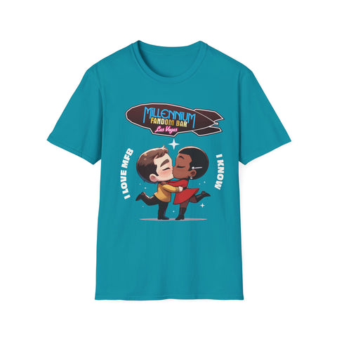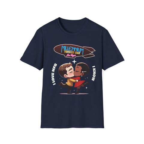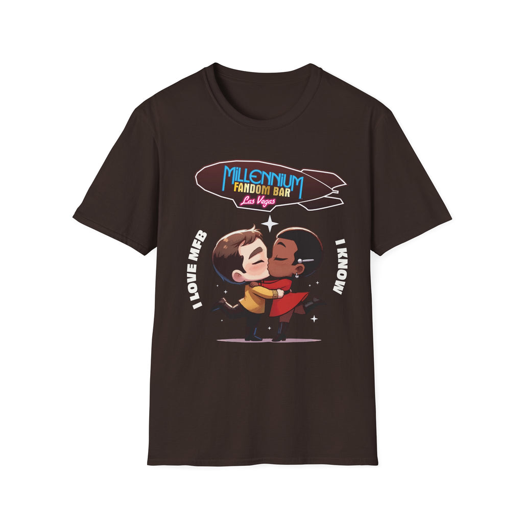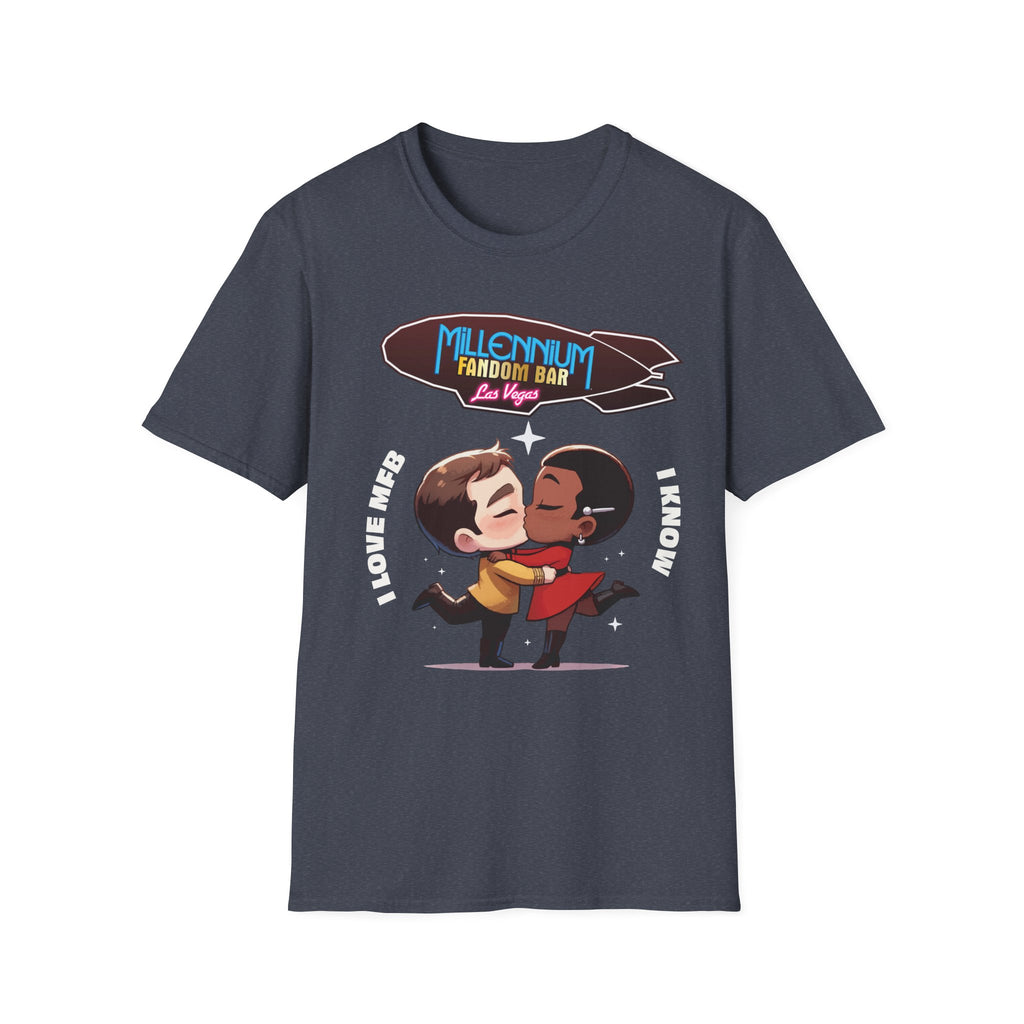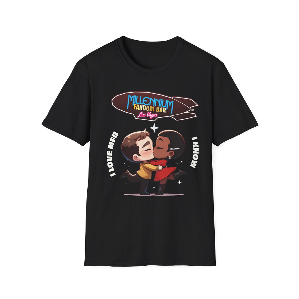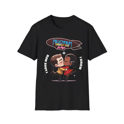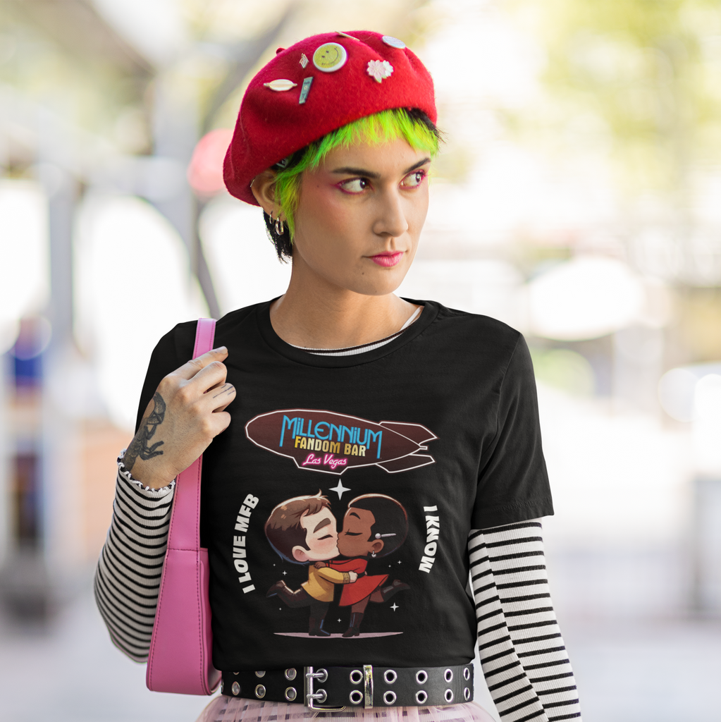 Inspired by the trailblazing chemistry of a certain sci-fi captain and his brilliant communications officer, this tee celebrates iconic love, interstellar charm, and the diverse spirit of fandom that defines the Millennium Fandom Bar.
