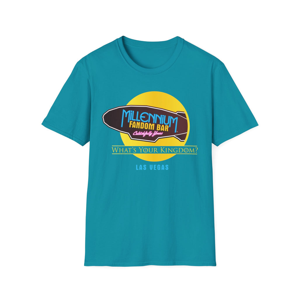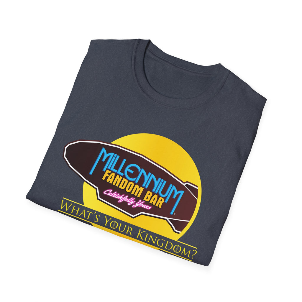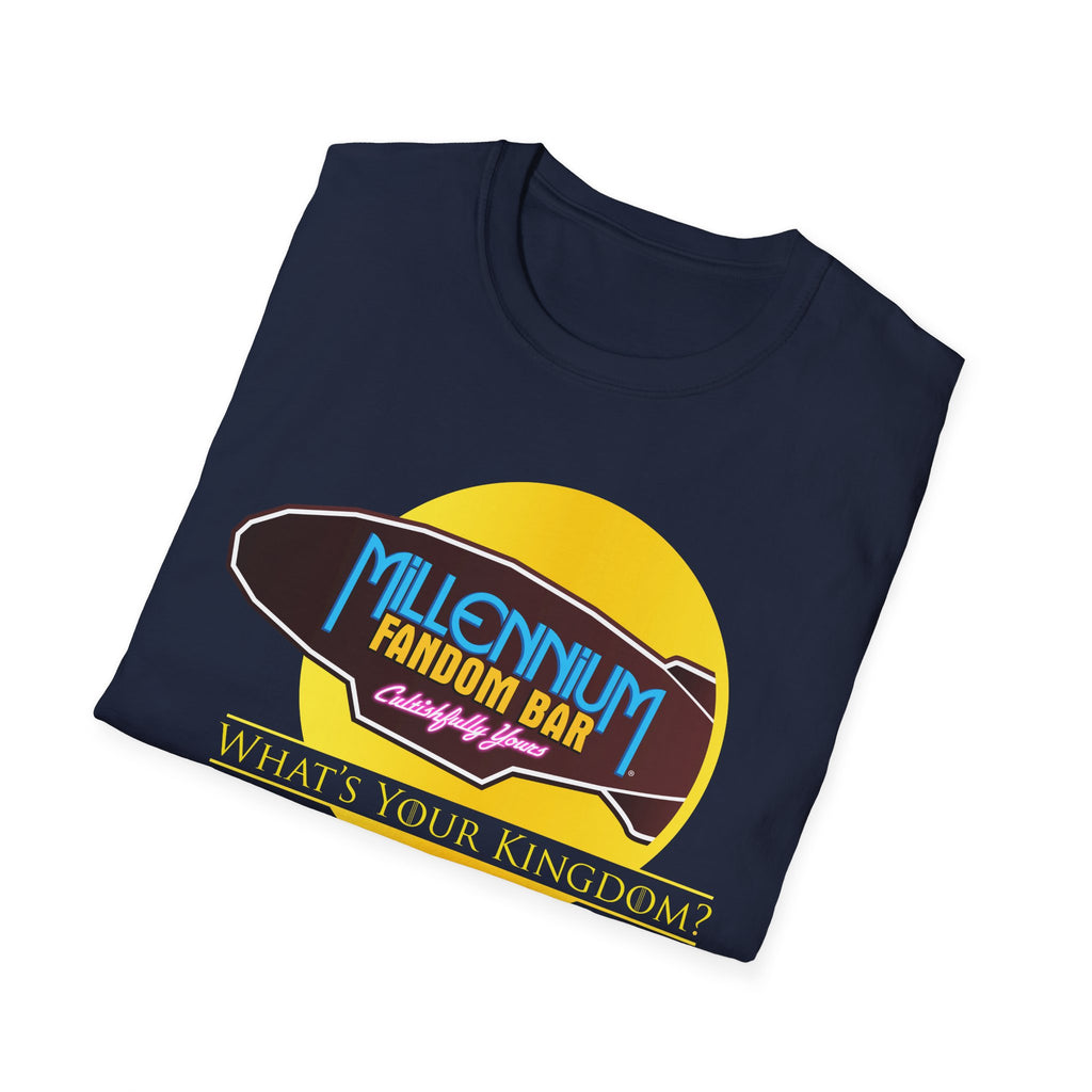 Step into the realm of the extraordinary with our original Millennium FANDOM BAR T-Shirt, part of the Classic Series. This isn't just a t-shirt; it's a declaration of your allegiance to the world of fandom. Emblazoned with our iconic logo and the captivating subtitle 'Cultishly Yours,' this shirt is an invitation to share your passion and declare 'What's your kingdom?'